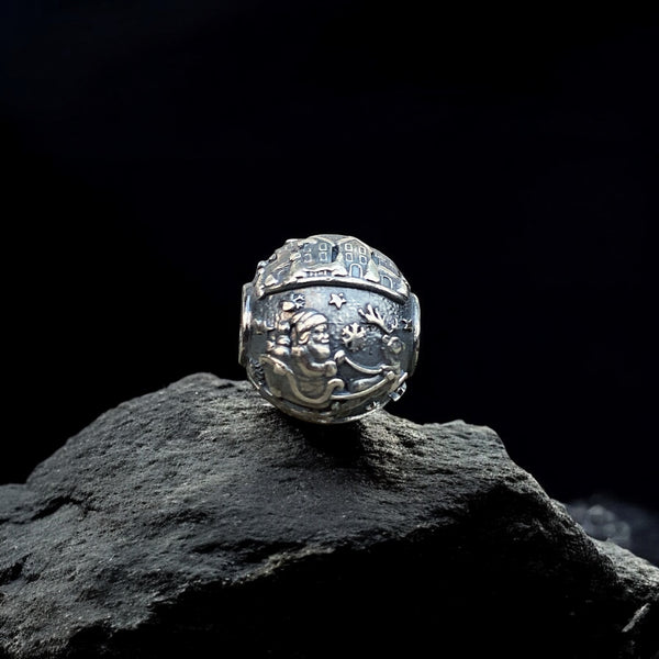 A Christmas charm that brings the magic of the season to your bracelet, beautifully crafted in oxidized sterling silver and inspired by Santa’s legendary journey from Lapland. Every detail is sculpted in 3D relief, telling a full story as the charm rotates in your hand.